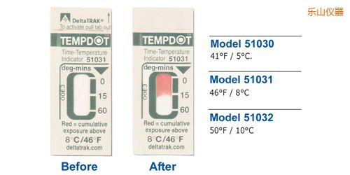 DeltaTrak提供滿足你各種需要的標(biāo)簽:WarmMark溫度標(biāo)簽、高溫?zé)針?biāo)簽和TempDot時(shí)間溫度指示標(biāo)簽顯示溫度變 化超過(guò)預(yù)設(shè)的時(shí)間。FreezeCheck和ColdMark溫度標(biāo)簽用于顯示運(yùn)輸溫度低于0℃。商業(yè)洗碗機(jī)使用的TempDot高溫?zé)針?biāo)簽可顯示最終沖 洗水溫是否達(dá)到71℃(HACCP體系所要求的溫度)。 TempDot時(shí)間溫度標(biāo)簽,,型號(hào)51030-51032,,是一種低成本的標(biāo)簽,,可顯示溫度高于閾值長(zhǎng)達(dá)60分鐘。當(dāng)溫度超過(guò)臨界值,,標(biāo)簽顏色變化開(kāi)始,但溫度下降到閾值之下時(shí),,標(biāo)簽顏色變化停止,,如此來(lái)顯示累積溫度超過(guò)的時(shí)間-,,對(duì)于許多質(zhì)保應(yīng)用來(lái)說(shuō),,度分鐘是非常的重要的概念。有三種溫度閾值5℃、8℃和10℃可供選擇。 這個(gè)低成本標(biāo)簽可以指示一段長(zhǎng)到60分鐘暴露在臨界點(diǎn)溫度。